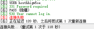 如果填写出现530 User ***** cannot log in 当右下方连接提示此错误时,