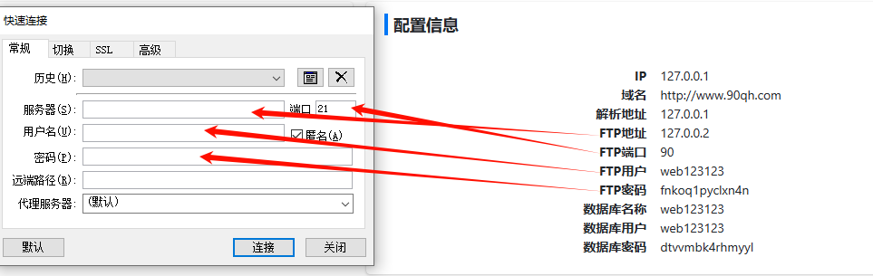 然后打开ftp软件 填写对应ftp信息