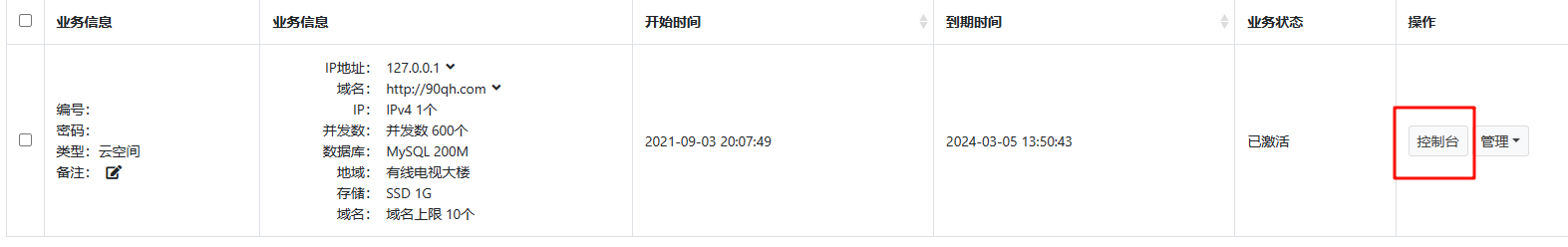 登录控制台 业务列表 查看对应主机